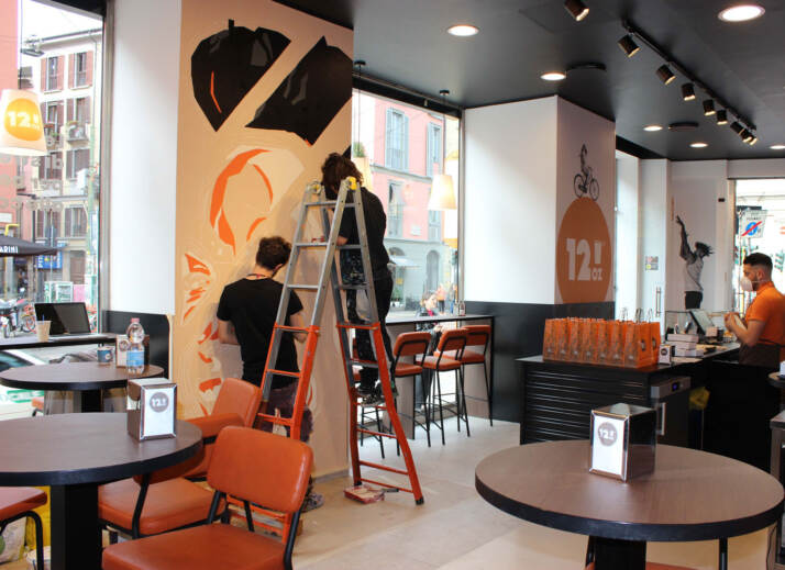 Il progetto “12oz di street art”, tassello importante del nuovo percorso di comunicazione, decora il nuovo locale di Porta Ticinese con l’opera permanente dello street artist Alessandro Breveglieri. L’artista, già noto per la realizzazione del Cyberpunk Parrot “mangia-smog” di Dergano, ha commentato in occasione dell’inaugurazione: