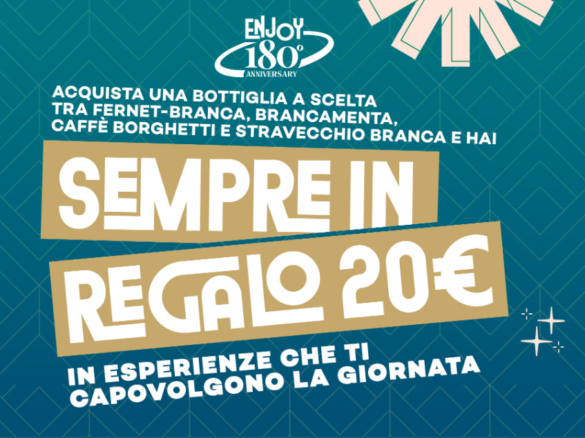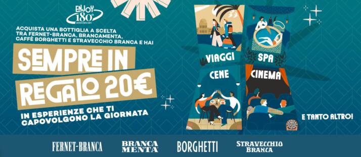 Per celebrare questa importante ricorrenza, l’azienda lancia una nuova operazione a premi multibrand che coinvolge quattro delle sue etichette più iconiche: Fernet-Branca, Brancamenta, Caffè Borghetti e Stravecchio Branca.