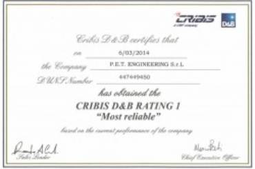 P.E.T. Engineering ha ricevuto da Cribis D&B il certificato “Rating Cribis D&B 1 – Indice di massima affidabilità”. Questo riconoscimento,…