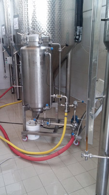 Il nuovo Dry-hopping, prevede il ricircolo della birra dal tank di fermentazione, passando attraverso questo serbatoio carrellato, contenente il luppolo. Così si ottiene un‘ efficace aromatizzazione della birra, evitando assorbimenti di ossigeno dovuti all’apertura del fermentatore per dosare a mano il luppolo. E’ molto semplice da lavare/sanificare e garantisce un livello di igiene molto alto.