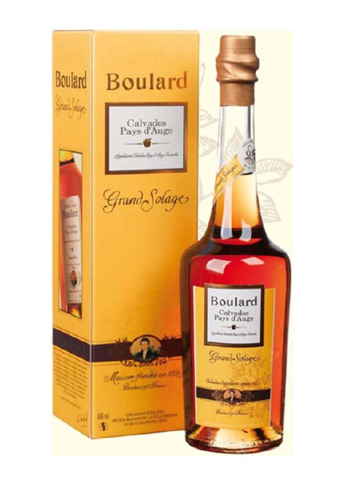 Fondata nel 1825, la Boulard è giunta oggi alla quinta generazione familiare, gestita con grande passione e competenza da Vincent Boulard. È stata la prima società nel Calvados a integrare tutta la filiera produttiva: dalla produzione delle mele, di cui seleziona ben 120 varietà differenti, alla produzione del sidro base, fino alla doppia distillazione del Calvados, 100% A.O.C. Pays d’Auge. Boulard opera una rigorosa selezione fra quattro differenti famiglie di mele: le amare (che danno struttura, equilibrio e armonia), le dolci (ricche di zuccheri), le dolci-amare (che apportano i tannini) e le acidule (che arrecano freschezza). Oggi la Boulard è la prima marca di Calvados A.O.C. Pays d’Auge sia in Francia sia sui mercati all’esportazione, presente in oltre sessanta Paesi del mondo. Il Calvados Pays d’Auge, invecchiati almeno due anni. Dopo averli selezionati, il Maestro distillatore li unisce con sapienza in quantità segrete. Colore dorato e profumo intenso di mela e vaniglia. Gusto vellutato, con grande ricchezza aromatica. Ideale liscio on the rocks, adatto per tutti i tipi di miscelazione, ottimo con la tonica. Nel catalogo di Rinaldi 1957.
