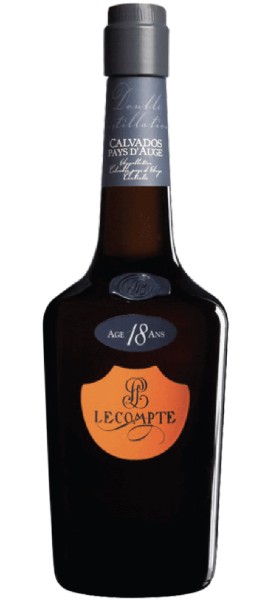 La distilleria Nasce con Alexandre Lecompte, un mercante di vini e liquori normanni, che nel 1923 decide di dedicare la sua vita alla produzione del Calvados fondando l’omonima società, la Lecompte House, co due soli alambicchi in rame da 25 ettolitri, tutt’oggi ancora utilizzati. Siamo nella zona della regione più rinomata, Pays d’Auge. Le varietà di mele coltivate nei suoli sabbiosi e calcarei, nei pressi della cittadina di Lisieux, sono sapientemente assemblate dal “Maître de Chai” Richard Prével. Il Calvados du Pays d’ Auge è prodotto in una zona limitatissima e prevede, obbligatoriamente, la doppia distillazione. Gli aromi speziati del Lecompte 12 Ans sono attenuati e si manifestano in questo 18 Ans con una grande delicatezza fruttata e bilanciata. Color rame ambra con eleganti profumi di mela Fuji matura. Al palato il gusto è gradevole ed ampissimo con delicati aromi di legno dati dal passaggio in botti di quercia francese Allier che ben si armonizzano con la fragranza delle mele come appena sfornate. Nel catalogo di Sagna.