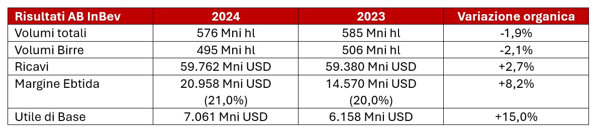 AB InBev: Ricavi record nel 2024 con 59,8 Miliardi di $ e crescita del 15% dell’utile per azione