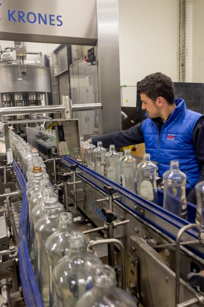Nel 2023 è entrato in funzione un nuovo impianto per la produzione delle referenze in vetro; l’impianto ci è stato fornito in toto dalla Società Krones ed è stato l’unico venduto a livello europeo. Abbiamo investito nel vetro andando controcorrente, infatti tutti i nostri competitor sono ancora concentrati sulle bottiglie in PET.