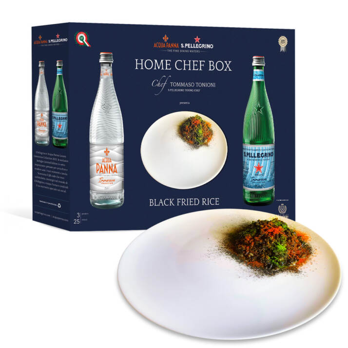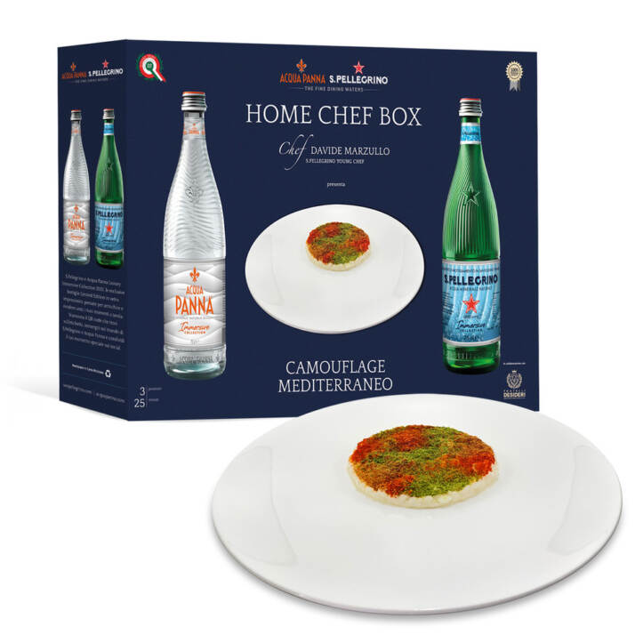 In ogni box sarà presente anche una bottiglia di Acqua Panna e/o S.Pellegrino, per esaltare la ricetta in base alle diverse caratteristiche organolettiche del piatto realizzato. Le bottiglie sono proposte nella nuova veste della Immersive Collection, esclusiva edizione limitata, creata per coinvolgere il pubblico in un’esperienza immersiva, un viaggio virtuale nel mondo delle due acque reso possibile dalla realtà aumentata: un’occasione unica per rendere ancora più ricca l’esperienza di gusto.