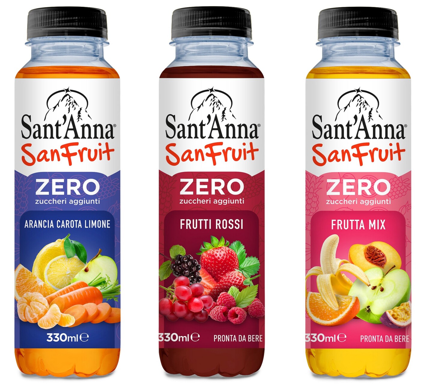 - SanFruit, 3 nuove bevande che uniscono la leggerezza di Acqua Sant’Anna alla bontà naturale della frutta. Con il 25-30% di succhi di frutta, senza zuccheri aggiunti, con edulcoranti e che contengono naturalmente zuccheri, SanFruit si può provare in 3 irresistibili gusti: Arancia Carota Limone, Frutti Rossi e Frutta Mix.
