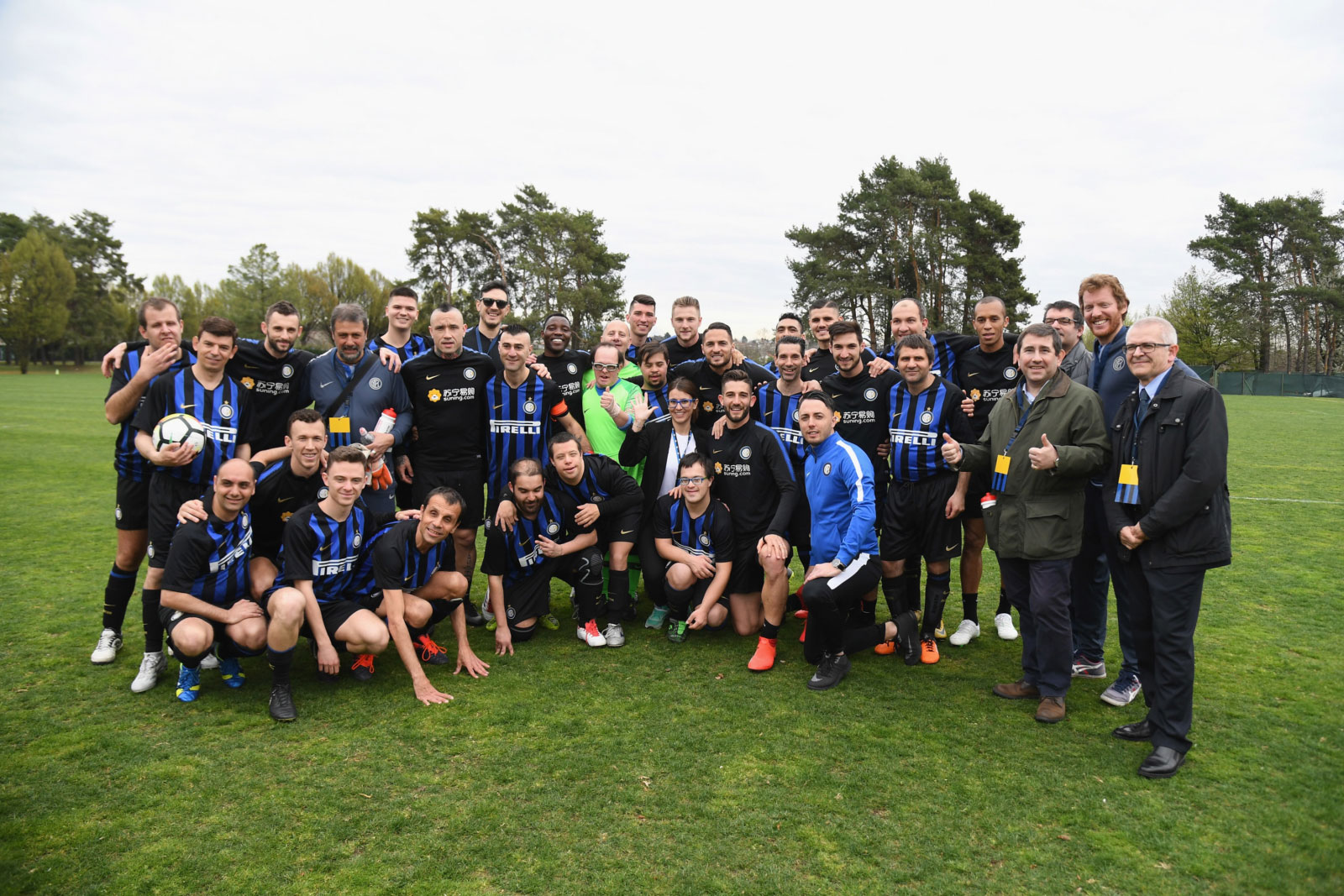 Giornata speciale quella dello scorso 5 aprile al Centro Sportivo Suning di Appiano Gentile, dove i giocatori dell’Inter hanno incontrato l’Associazione Sportiva Sporting 4E Onlus, squadra di calcio di Quarta Categoria che gioca il campionato con la maglia nerazzurra. L’iniziativa si è svolta in collaborazione con Sangemini, Acqua Ufficiale della squadra nerazzurra. I ragazzi di Sporting 4E hanno incontrato l’allenatore e i giocatori della prima squadra e si sono uniti a loro per una breve partita sui campi del Centro Sportivo Suning.