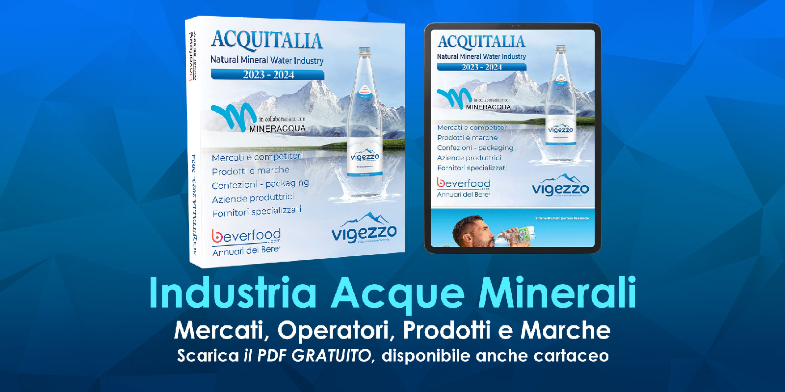 Puntuale come ogni anno esce l’annuario Acquitalia 2023-2024 di Beverfood.com. Nell’Annuario focus su tutta la complessa realtà settoriale delle acque minerali con riguardo a mercati e scenari competitivi, marche, confezioni & packaging, produttori e fornitori specializzati. Dopo un 2022 dove è proseguita la crescita dei consumi già avviata nel 2021 con un deciso avanzamento rispetto ai valori pre-pandemici, lo scenario per il 2023 ha visto una frenata dei consumi a quantità a causa dell’inflazione che ha ridotto le disponibilità reali delle famiglie, ma con un mercato ancora in crescita a valore grazie all’aumento dei prezzi medi.
