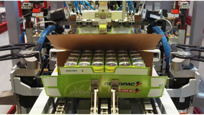 The medium-speed offering is an extremely compact line that combines shrink wrapping and palletising with combined wrapping. Amongst the semi-automatics, on the other hand, the two proposals are the S7 robot and the Recycle compactor, a machine designed with sustainability in mind, which compacts consumables – such as empty, non-reusable cardboard boxes – and reduces their volume by up to 70%, also facilitating their transport. There is another novelty in the field of circular economy and that is the adoption on the winder of a pre-stretch carriage modified to handle coreless film reels: in this way it is possible to use the total amount of film on the reel without generating waste; furthermore, the film reel is lighter – while guaranteeing the same performance as standard reels – and, finally, there is no longer the problem of managing the disposal of the cardboard core. At Drinktec, 30% PCR (post-consumer recycled) stretch film will be used on the wrappers.