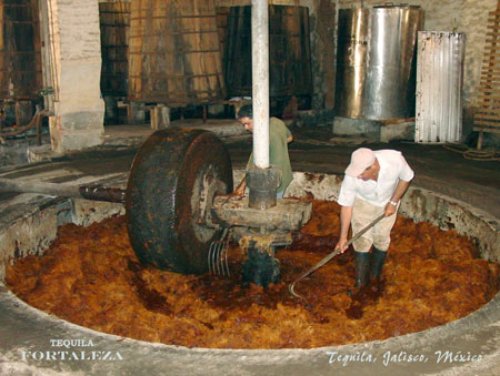 TAHONA FORTALEZA Insieme a noi dei veri guru del settore. Stefano Francavilla, che vive in Messico da tredici anni, ci ha parlato di tequila Fortaleza. Una tequila prodotta come si faceva una volta. Parla con un italiano con accento spagnolo Stefano, il Messico e la Tequila lo hanno stregato e ha deciso di vivere oltreoceano a Guadalajara ormai da tredici anni e fare da brand ambassador per Tequila Fortaleza, un prodotto diverso dagli altri. “Fortaleza ha una storia di cinque generazioni dal 1873, a Fortaleza la Tequila è una tradizione di famiglia. Don Javier Sauza vendette le sue due distillerie al gigante Beam Suntory nel 1976, che non rilevarono la terza distilleria considerata obsoleta”. Questa distilleria situata nel centro del puebloo di Tequila, chiamata Forteleza, aveva un forno di pietra riscaldato a vapore, una “tahona”, una sorta di frantoio a trazione animale per la molitura delle agavi cotte, tini di fermentazione in legno e un alambicco in rame di ridottissima capienza. “Siamo ripartiti nel 2002 con il sogno di fare una Tequila artigianale, rese basse, un prodotto unico”. Per fare un litro di Tequila vengono impegnati circa 12 Kg di Agave, mediamente ne servono le metà, considerando che il prezzo dell’Agave è schizzato negli ultimi tempi, si può comprendere il valore della qualità di Tequila Fortaleza. Oggi per l’acquisto di un kg di agave servono 25 pesos, solo due anni fa ne bastavano 15, questo aumento è stato dettato dal fatto che il mercato della Tequila è in espansione nell’ultimo ventennio, il prezzo dell’Agave aumenta quando si avvicina la fine del ciclo produttivo che prevede sette anni da piantagione a raccolto. Per fare la Tequila esiste un disciplinare in cui è ammessa solo una tipologia di Agave delle 200 specie presenti, la Weber Blue Agave.