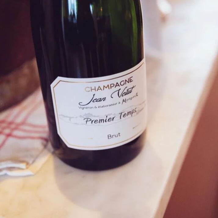 Tra le mecche della Champagne il villaggio di Montgueux può essere immaginato come un isolotto arroccato a 270 m. di altitudine, dal quale si abbraccia con lo sguardo la vasta pianura. Qui ha sede Jean Velut, generazioni di viticoltori che producono delle ottime bolle da assaggiare, come il loro Premier Temps Brut. Vitigni 86% Chardonnay e 14% Pinot Noir, cuvée composta da uve di una singola vendemmia e per il 25% da “vins de réserve”, dosage 7 g/l. Uno Champagne etereo e sottile che sprigiona sentori agrumati e di fiori bianchi. Nel calice la delicatezza e la freschezza dello Chardonnay, vengono sapientemente bilanciate dalla profondità del Pinot Noir, una chicca nella lista di Pellegrini