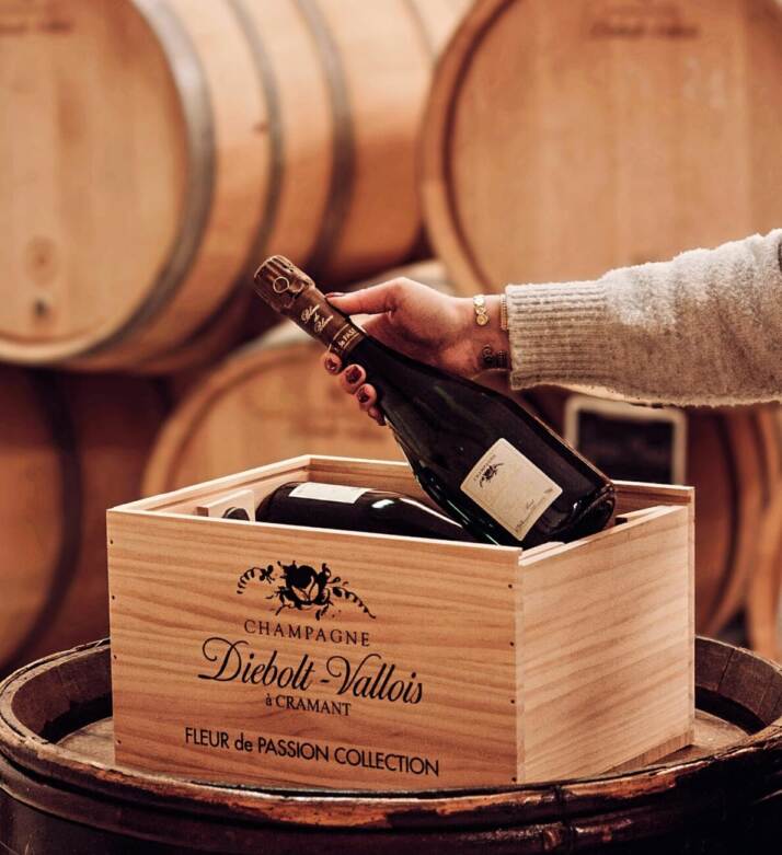 La Maison Diebolt-Vallois si trova a Cramant, un villaggio della Côte des Blancs, il cui suolo calcareo rende lo rende perfetto alla coltivazione dello Chardonnay, il regno degli Champagne Blanc de Blancs, ottenuti da uve bianche Chardonnay in purezza. Come nel caso dell’etichetta più importante della casa, il Blanc de Blancs Fleur de Passion Extra Brut 2013. Una bollicina dal perlage finissimo ed elegante, colore giallo paglierino brillante, al naso sentori di aromi fruttati, con intense note minerali, in bocca freschezza e sapidità con una grande persistenza.