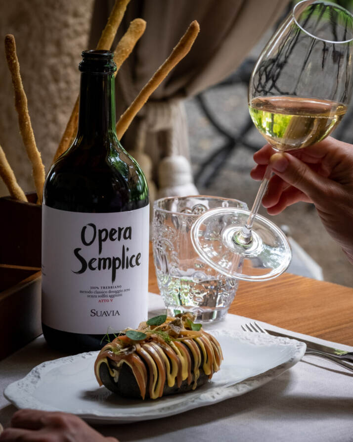 Un’opera realizzata e proposta in maniera semplice. Niente fronzoli, solo territorialità senza filtri, un metodo classico da uve di Trebbiano di Soave prodotto solo nelle annate migliori con i grappoli più belli. Una bollicina sperimentale ed inconsueta che rappresenta un ulteriore passo in avanti del progetto Suavia di recupero di quest’antica varietà. Giallo paglierino brillante dal perlage sottile e continuo, al naso sentori sulfurei e di frutta secca tostata accompagnano fresche note agrumate e minerali, in bocca finisce in un intenso allungo sapido.