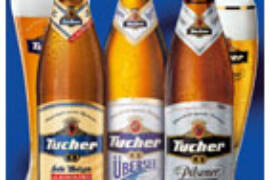 La storia della birreria Tucher Bräu iniziò nel 1672 con la famiglia dei baroni von Tucher, antica stirpe patrizia, in quel tempo impegnata nella “guerra santa” in Palestina. Il simbolo araldico della famiglia, immortalato dalla testa di moro, appare ancora oggi sull’etichetta delle birre. Nel 1855 la birreria acquisì il titolo di “Koeniglich Bayerisches Weizenbräuhaus” (Birreria Reale della Birra Weizen). Da quel momento iniziò uno sviluppo galoppante con l’entrata in funzione di moderni impianti a vapore e l’inizio dell’esportazione al di fuori dei confini della Baviera. Sul finire dell’’800 la birreria si trasformò in Spa e costruì un nuovo stabilimento a Norimberga, ponendo le basi per una forte espansione anche al di fuori della Germania. Nel 1994 la società ha rafforzato la sua espansione, ottenendo, inoltre, numerosi riconoscimenti qualitativi.. Dal 1995 la birreria Tucher ha ottenuto il certificato DIN ISO 9001. Nell’estate 2003 la Tucher Bräu è stata associata al gruppo di birrerie “Brau & Brunnen” di Dortmund che, per parte sua, nel 2004 è stato associato alla “RB Brauholding GmbH” di Francoforte. Le birre Tucher sono distribuite in Italia dalla Carlsberg Italia
