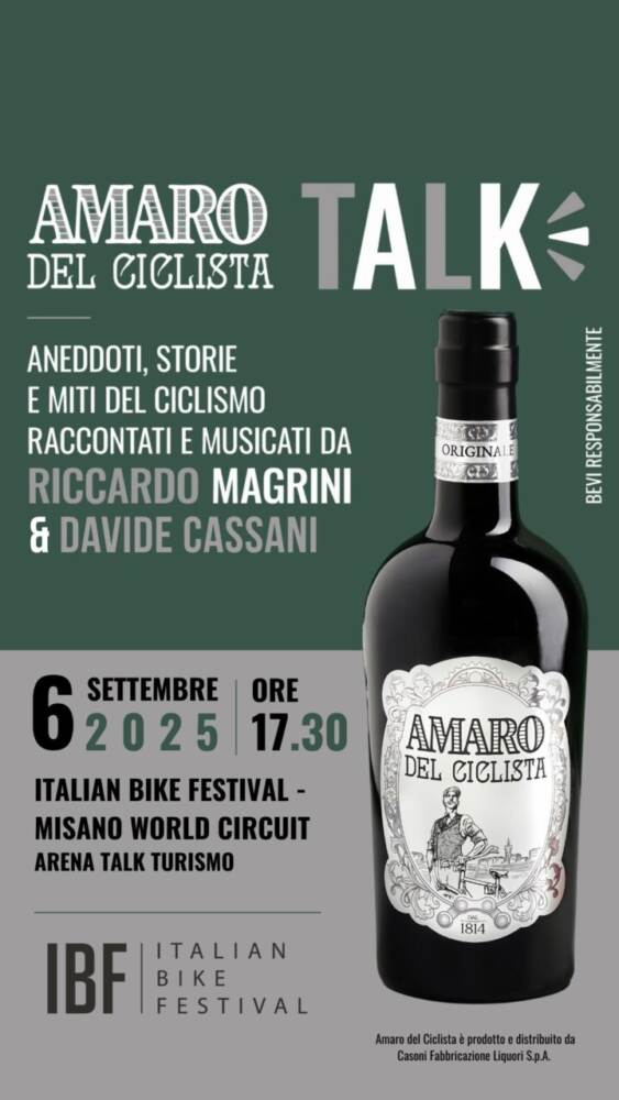 Tra le novità del 2025, la tappa speciale di Amaro del Ciclista Talk, che sabato 6 settembre alle 17.30 porterà sul palco di IBF (Arena Talk Turismo) ospiti d’eccezione del mondo del ciclismo come Riccardo Magrini e Claudio Chiappucci, per racconti, curiosità e momenti di confronto in un clima informale e conviviale.