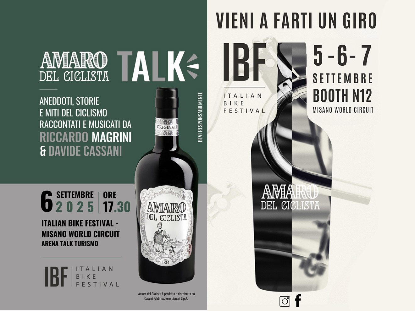«Invitiamo tutti a passare presso lo stand di Amaro del Ciclista al BOOTH N12 di IBF, dove non solo sarà possibile degustare le nostre due varianti, ma anche incontrare grandi protagonisti del ciclismo come Claudio Chiappucci, Riccardo Magrini e Gianni Bugno: ospiti che con la loro presenza daranno ancora più valore a questa edizione di IBF e al nostro percorso di vicinanza al mondo delle due ruote.» – conclude Greco.