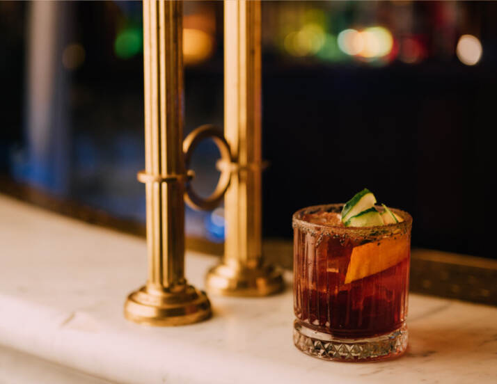 Ma sono gli Amaro Signatures a dar libero sfogo a tutta la creatività del Bar. Si passa da un Cucu Tonic (Bulldog gin, bitter alla violetta, fettine di cetriolo, rosa Damascena, tonica) al Grand Bazaar (Bulldog gin, infuso di rosmarino, bitter al Pimento, scorza d’arancia, stecca di cannella, acqua tonica) o al Castro Street (Campari, Cynar, Cinzano 1757 vermouth rosso, cetriolo e una bordatura di sale affumicato).  Per gli amanti del tequila, l’Azul (Espolon, succo di lime fresco, basilico, sciroppo d’agave, bordatura di pistacchio) e per quelli del Pisco, il Blossom (Pisco, succo di lime, sciroppo di litchi, Peychaud bitter, succo d’arancia, polvere di ibisco). E per tutti gli amanti del mezcal El Mariachi (Montelobos espadin mezcal, Frangelico, sciroppo d’agave, succo di lime).