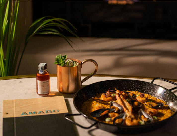 Amaro è un concetto che abbraccia in modo trasversale tutti gli hotel del gruppo Melià in Europa e nel mondo, una filosofia che profuma di Mediterraneo – spiega Abram CodazzoUno stile e un modo di bere che rievoca questo bellissimo mare che lambisce la Spagna, l’Italia e tutti i Paesi che vi si affacciano. Di conseguenza anche la nostra proposta food è imperniata sulla condivisione. Piatti che vogliamo provare con altri commensali. È proprio quello spirito che caratterizza le tapas ma anche la paella, nata come piatto della domenica e della festa in Spagna poi estesa a tutti i momenti che esprimono la gioia e la voglia di stare insieme. Per quanto riguarda il bere, noi siamo focalizzati molto sugli amari. Un aspetto centrale nella miscelazione. Un buon drink si regge su due aspetti, il bitter e la base dolce. Noi lavoriamo molto su tutti gli amari, i vermouth e i cordiali della tradizione mediterranea, sulle sangrie, le infusioni di frutta e i vini spagnoli più interessanti. Come filo conduttore abbiamo un nostro amaro davvero speciale che è il risultato di un mix di amari reinfusi. Un blend esclusivo che rende quel tocco di unicità a molti dei nostri signature”.