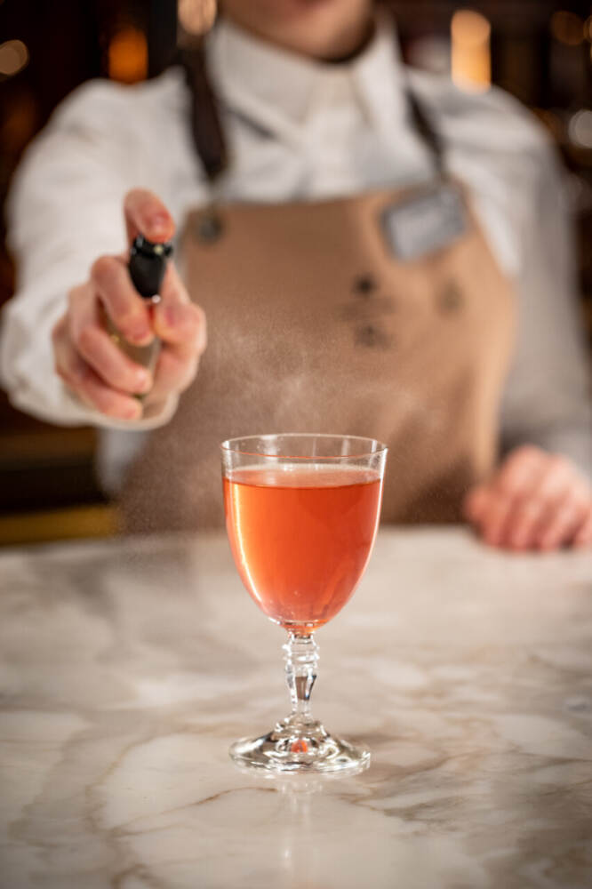 Don’t Pink About It celebra i sapori vivaci del Sud Italia. In questo cocktail, l’infusione di frutti rossi – lampone, ibisco e ribes – si combina con il gin Tanqueray 10 e il limoncello Villa Massa, accentuando le sue note agrumate. Un’ultima spruzzata di olio essenziale di bergamotto calabrese, applicata direttamente al momento del servizio, aggiunge quel tocco finale che completa il profilo aromatico in modo sorprendente: