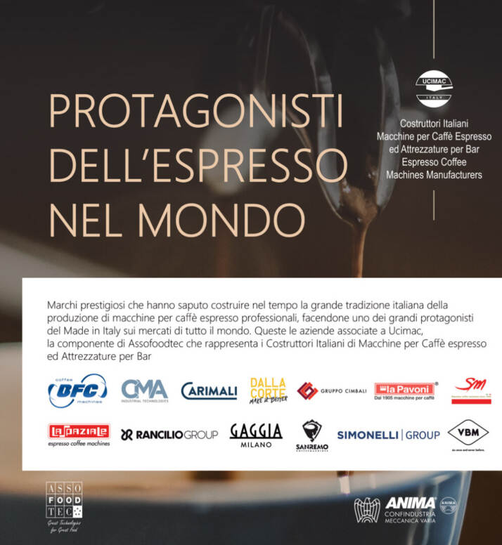 Marchi prestigiosi che hanno saputo costruire nel tempo la grande tradizione italiana della produzione di macchine per caffè espresso professionali, facendone uno dei grandi protagonisti del “made in Italy” sui mercati di tutto il mondo. Esempi di storie e successi imprenditoriali capaci di rinnovarsi nel tempo e di conquistare sempre nuovi spazi, come prova l’elevata percentuale di export del settore che raggiunge oggi circa l’80% della produzione.
