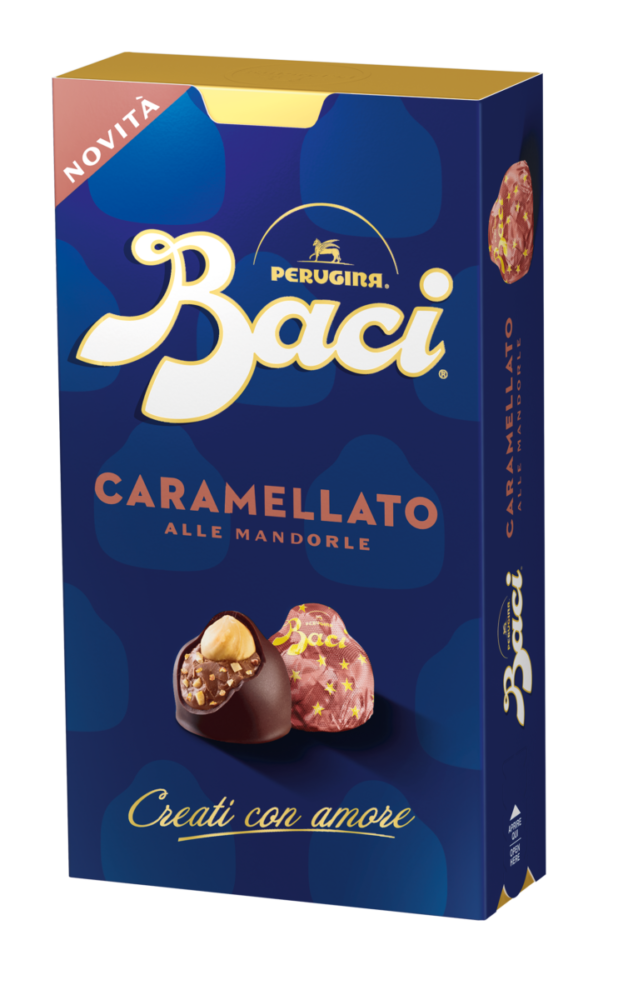 Baci Perugina Caramellato alle Mandorle, prodotto all’interno dello Stabilimento di San Sisto a Perugia, entra nella gamma continuativa e si aggiunge alle proposte Classico, Latte, Fondente 70% e Caffè. La nuova variante è disponibile nel formato Bijou, da 200g al prezzo consigliato al pubblico di 7,89€, e Tubo Baci da 37,5g al prezzo consigliato al pubblico di 2,79€.