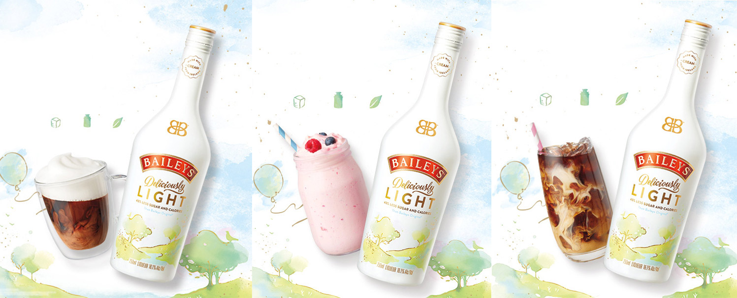 Baileys Deliciously Light è la nuova innovazione che Diageo ha lanciato nel mercato USA. Si tratta di una versione light di Baileys Original Irish Cream con il 40% in meno di zuccheri e calorie al gusto di cacao e vaniglia.