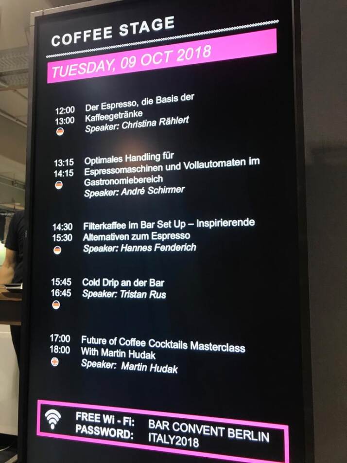 Negli USA senza dubbio il caffè è il  focus della cultura beverage in questo periodo e, essendo io un’accanita bevitrice di caffè oltre ad   (come diciamo noi) una “coffee cocktail lover”, ero impaziente di scoprire come  veniva visto il “coffee-at-night concept” in Europa. Coffee Convent Berlin 2018 ha ospitato 13 seminari sull’argomento durante un evento di tre giorni, che hanno affrontato argomenti che vanno da “come migliorare la tecnica del caffè espresso” a “capire il freddo” fino a “futuro dei cocktail di caffè” e “come integrare con successo dei cocktail al caffè nel bar tradizionale ‘.