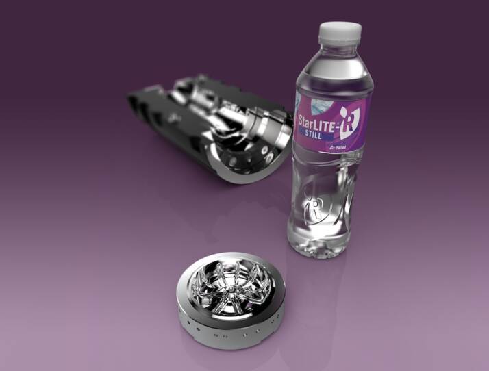 La base per bottiglia StarLITE®-R STILL, frutto della tecnologia brevettata di Sidel, presenta una distribuzione precisa e un’estensione ottimale del materiale, oltre all’ottimizzazione dello sfiato che agevola la modellazione e un efficiente circuito di raffreddamento della base ideale per le alte temperature di lavorazione dell’rPET.