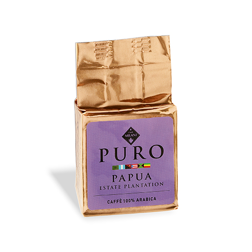 La “maglia rosa” della linea Puro è Papua Estate Plantation coltivato in fattorie di piccole dimensioni, molte delle quali situate all’interno di foreste, a un’altitudine tra i 1300 e i 1500 metri. Ha un profumo delicato, un corpo eccellente e un’acidità poco accentuato; l’aroma è equilibrato e fruttato. I produttori locali sono soliti affermare: “Se non avete mai assaggiato un caffè dell’isola di Papua, non siete mai stati in Paradiso”.
