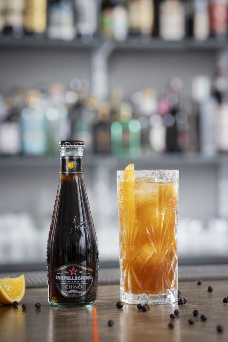 E proprio Chinò e la sua anima iconica sono protagonisti di Chinò Sling, il nuovo drink dal colore ambrato, semplice ma al tempo stesso ricercato, realizzato con sherbet all’arancia, amaro, e soluzione acida e chiuso con una nota di sapidità data da un rim di sale, che amplifica e bilancia le sfumature dolci ed amare del drink. Una creazione ispirata agli sling – cocktail a base di vermouth, succo di limone, sciroppi e amari – che delizia il palato con un mix unico di sapori audaci, proprio come lo spirito di Chinò Sanpellegrino. Ma non solo, per chi ricerca sobrietà e leggerezza le Bibite hanno pensato ad una versione analcolica di Chinò Sling in cui l’amaro viene sostituito da un delicato Botanical Spirit analcolico, un liquore botanico no alcol, aromatizzato con erbe e spezie.