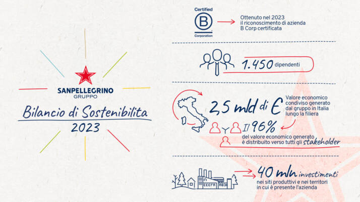 “Il Bilancio di sostenibilità illustra il nostro approccio, fondato sulla creazione di valore condiviso, porta alle comunità in cui operiamo, alle persone, all’ambiente. Grazie agli investimenti sui nostri stabilimenti e nei territori in cui siamo presenti, che nel 2022 sono ammontati a oltre 40 milioni di euro, ci impegniamo inoltre a dare vita anche a progetti di ampio respiro che mirano a prendersi cura delle aree naturali e dei bacini idrici correlati e a rigenerare i cicli idrogeologici e gli ecosistemi dei territori in cui si trovano le nostre fonti.” – ha dichiarato Michel Beneventi, Amministratore Delegato del Gruppo Sanpellegrino – “A riconoscimento della nostra volontà di agire come ‘force for good’ all’interno della società, Sanpellegrino ha recentemente ottenuto lo status di B Corp. Questo significa, non solo che la nostra azienda soddisfa standard elevati di impatto sociale, ambientale e trasparenza, ma anche che si impegna costantemente a misurare e migliorare le proprie performance ambientali e sociali, come testimonia il Bilancio di sostenibilità, che rappresenta un momento per fissare i traguardi raggiunti, prima di ricominciare il cammino per migliorare ulteriormente”.