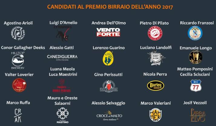 Candidati al premio Birraio dell’Anno 2017