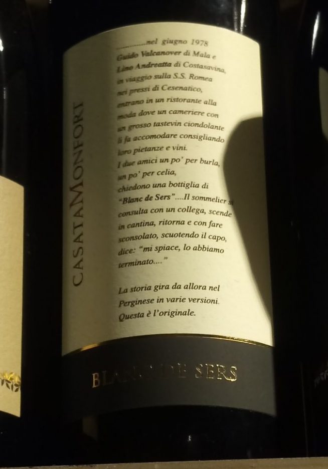 È questo il caso del Blanc de Sers, il vino che non esiste. Una storia così, è rimbalzata da bocca a orecchio intorno a tutti i tavoli del trentino, fino a diventare leggenda… fino a concludersi tornando all’origine, diventando a sua volta vino.