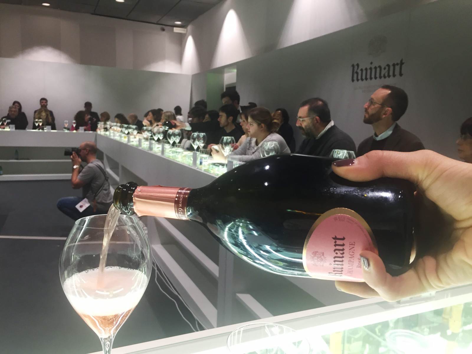 E a proposito di colore, la prima cosa che balza agli occhi del Rosé Ruinart è questo rosa corallo, davvero speciale. “Quando facciamo il Rosé, dico sempre che dobbiamo avere un colore giusto, che sia la guida nel tempo per degustare i nostri Champagne. Abbiamo dei documenti risalenti al 1764 in cui in una bolla di trasporto si parla di un vino che all’epoca si chiamava Occhio di Pernice, il primo Rosé dell’epoca”– ha spiegato Frederic Panaiotis, chef de cave de la Maison Ruinart, l’artefice di questi prodotti dalla grandissima eleganza. Il Rosé Ruinart è frutto di un assemblaggio di Chardonnay Premier Cru della Cote de Blancs (45%) e il Pinot Noir Premier Cru della Montagne de Reims e della Valle della Marne (55%). Viene utilizzata una percentuale di circa il 20% dei vini di riserva delle due annate precedenti, in un blend molto bene amalgamato. Il classico colore corallo è utilizzato con una tecnica permessa in Champagne, vale a dire l’aggiunta nella fase di assemblaggio di una parte di Pinot Noir, circa il 20% vinificato in rosso, proveniente da un vigneto Premier Cru e vinificato con un leggero contatto con le bucce. Le note degustative ci parlano di un naso con una bella intensità, sentori fruttati con amarena e fragola bilanciate con una tocco di speziato, in bocca è elegante, fine, morbido e cremoso, ideale come vino a tutto pasto.