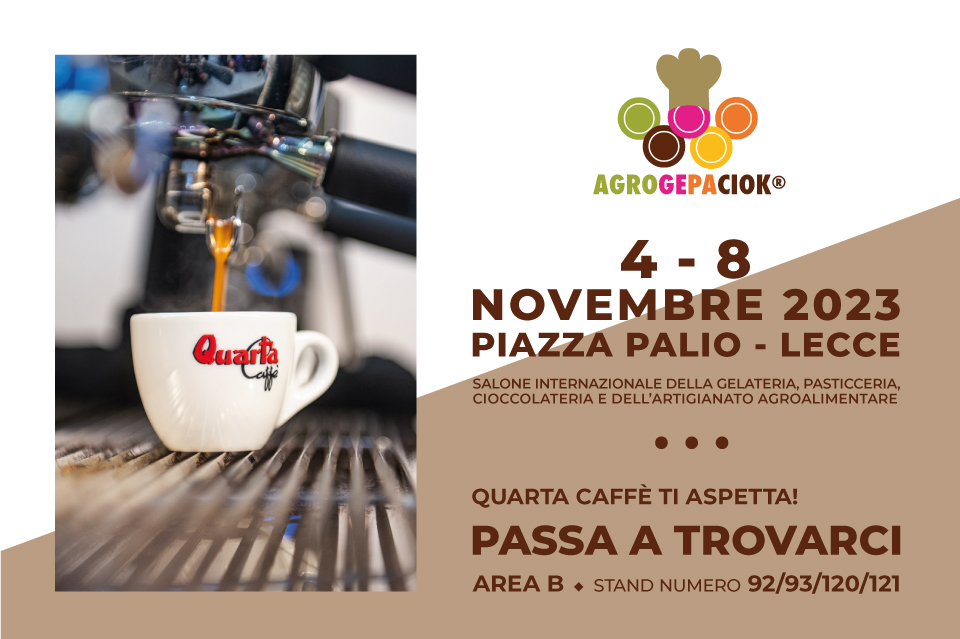 Quarta Caffè presente ad AGRO.GE.PA.CIOK 2023 dal 4 all’8 novembre a Lecce Fiere, Piazza Palio