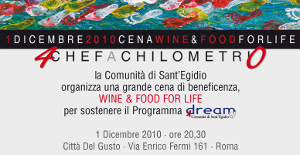 Annuario Coffitalia Beverfood I proventi di questa serata di solidarietà, diventata ormai un appuntamento fisso, saranno interamente devoluti a sostegno del Programma DREAM, un programma avviato nel 2002 dalla Comunità di Sant’Egidio per la lotta all’AIDS in tutta l’Africa sub-sahariana; non a caso, infatti, la cena si terrà il 1 Dicembre, Giornata Mondiale per la lotta all’AIDS. La serata sarà realizzata anche grazie all’accresciuta e sempre più stretta collaborazione con Gambero Rosso GRH, e da quattro grandi chef, che formeranno un’unica straordinaria brigata per una cena che si prospetta davvero speciale. Anche numerosi “Amici” romani collaboreranno alla riuscita della serata, in sala e in cucina. Il servizio sarà eseguito da 40 ragazzi volontari, che coordinati da professionisti del settore daranno il loro contributo e aiuto volontario alla realizzazione della serata.