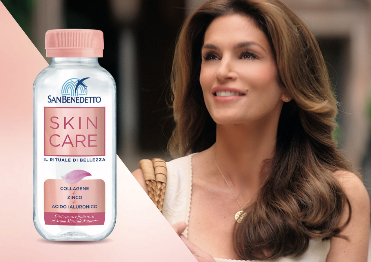 “Siamo felici di avere nuovamente la meravigliosa Cindy Crawford come testimonial della nostra nuova campagna di comunicazione – dichiara Vincenzo Tundo, Direttore Marketing e Trade Marketing Italia del Gruppo Acqua Minerale San Benedetto S.p.A. – “Con il claim My Secret vogliamo rendere partecipi gli italiani del segreto che un’icona mondiale di bellezza come lei trova racchiuso nella qualità e nelle peculiarità dei nostri prodotti, frutto di una costante ricerca che ha permesso negli anni al nostro Gruppo di essere precursore nel settore del beverage analcolico”.