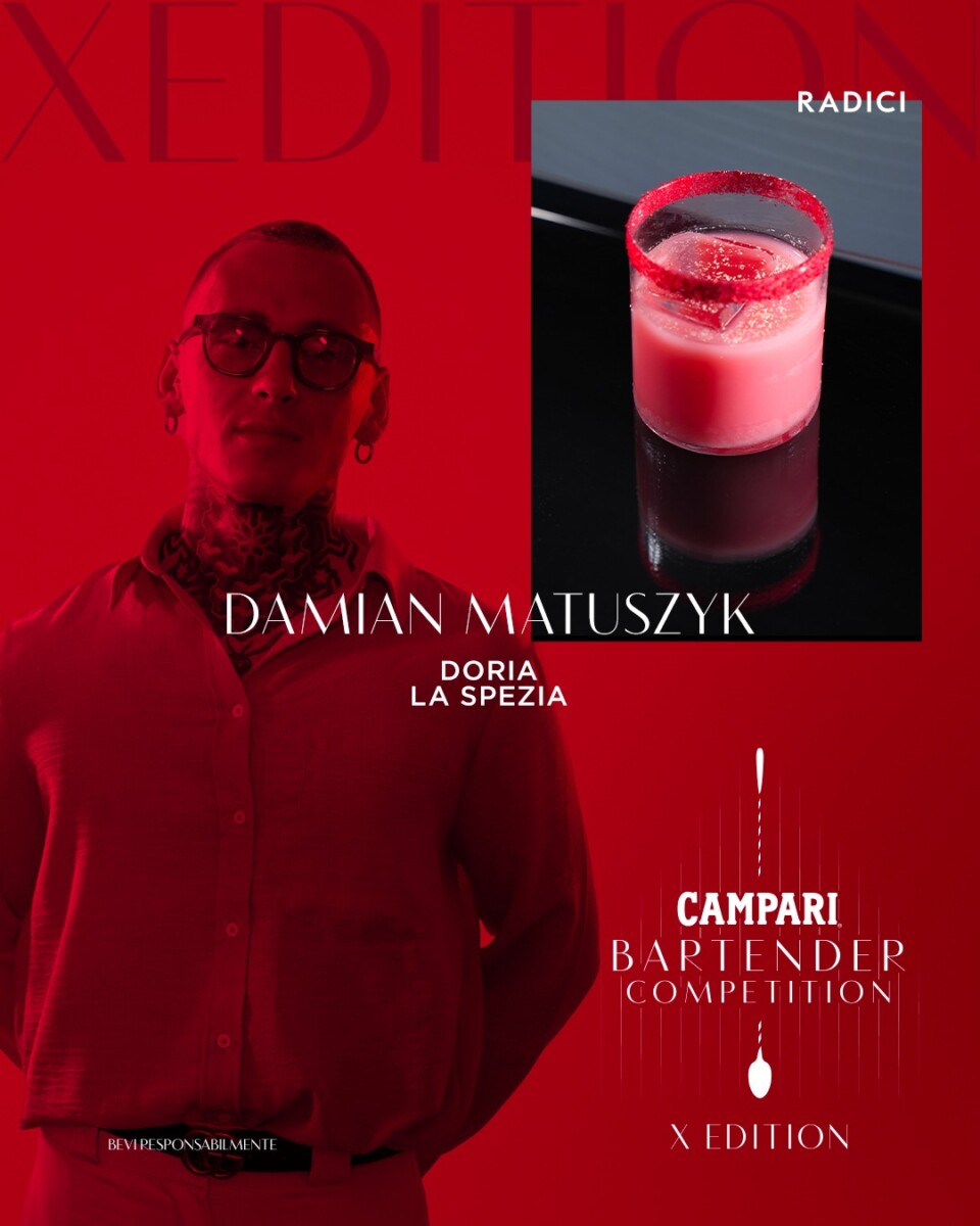 Dovranno riproporre il cocktail con cui sono stati selezionati nelle fasi iniziali, poi rimarranno in cinque, promossi dalla giuria composta da Luca Casale (Campari Academy Coordinator), Alessandro Pitanti (Channel&Customer Field Manager Campari Group), Dom Carella (F&B consultant, proprietario di [Ca-ri-co] Milano), Tommaso Cecca (Global Head of Camparino Licensing&Mixology), Nicola Scarnera (Campari Academy Manager) e Samuele Ambrosi (proprietario a Treviso di CloakRoom, CloakLab e Boss Hogg).