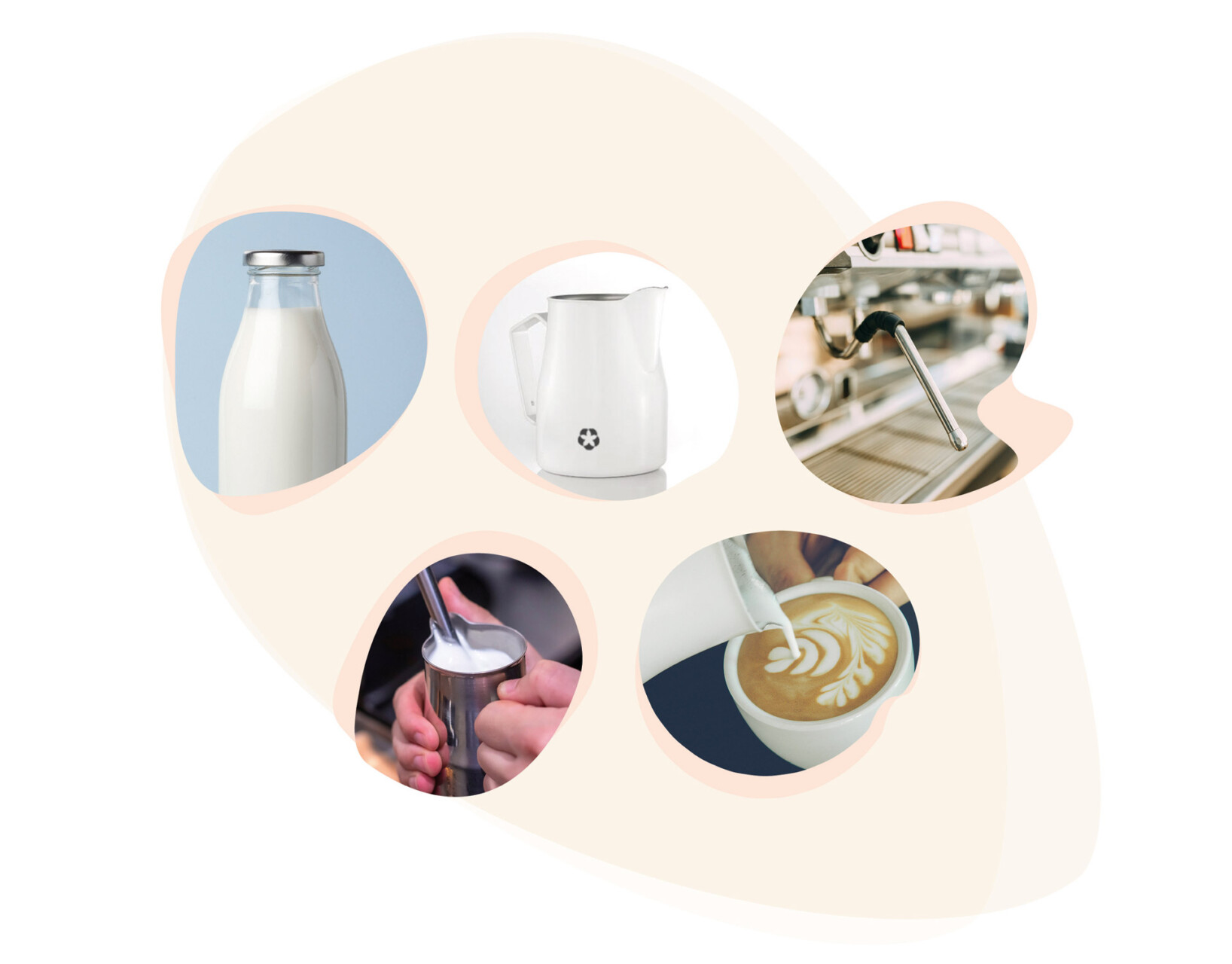 Alla scelta del latte va affiancata quella della lattiera che, con la sua forma tronco-conica, si presta a una montatura del latte, il quale deve vorticare al suo interno per poter emulsionare correttamente e raggiungere il livello desiderato.