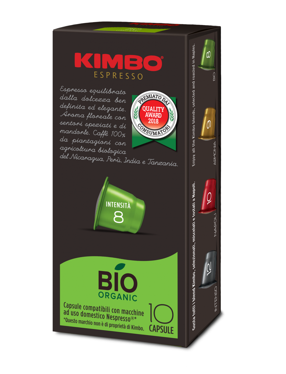A conferma dell’alta qualità del prodotto, la linea Kimbo Espresso capsule compatibili si è recentemente aggiudicata per il secondo anno consecutivo il premio Quality Award 2018, l’unico riconoscimento italiano attribuito ai prodotti alimentari tramite il coinvolgimento diretto di un ampio campione di consumatori residenti in tutto il territorio nazionale che attraverso blind test analizzano le qualità intrinseche del prodotto.