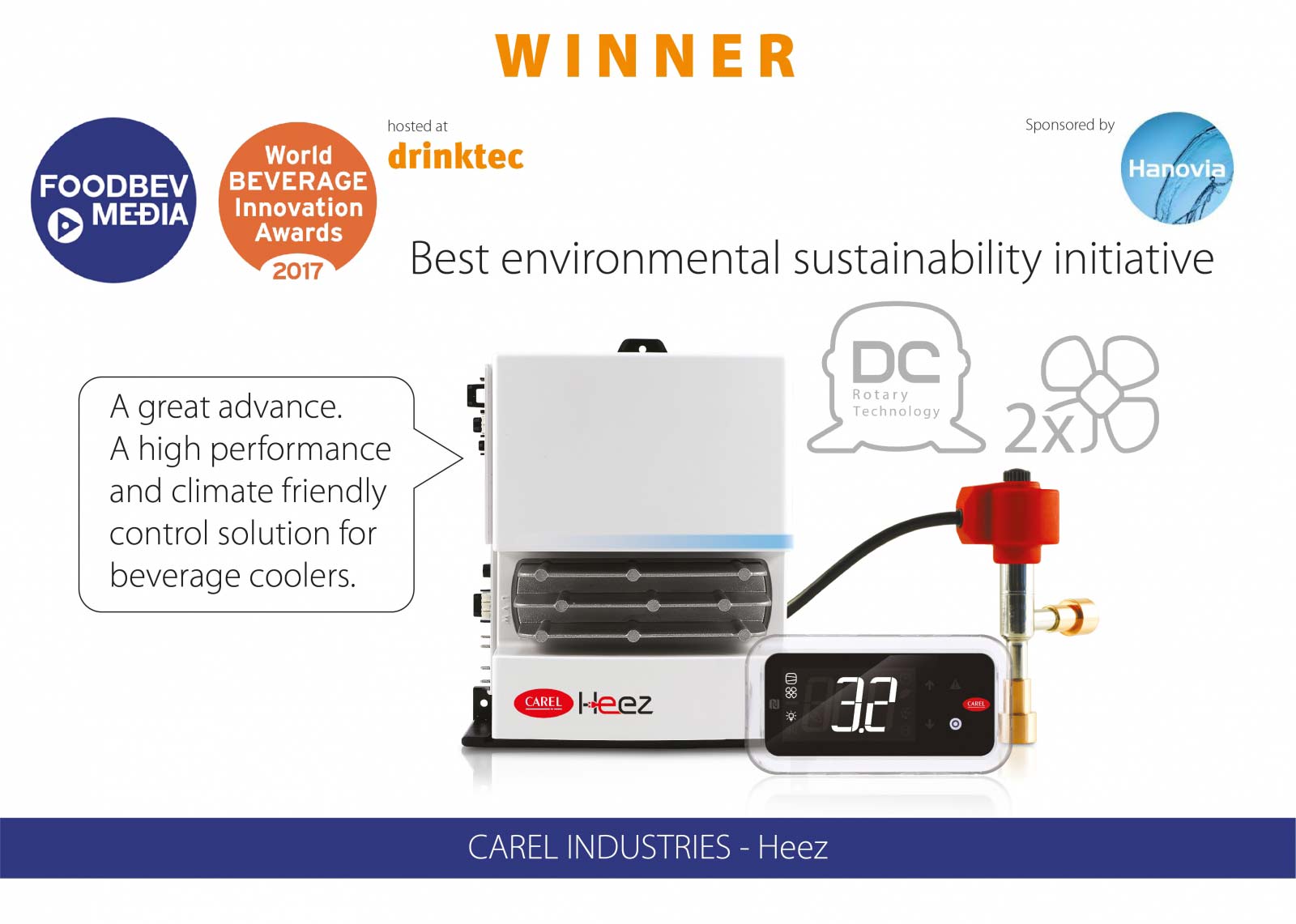 Heez, la soluzione CAREL ad alta efficienza per il controllo e la gestione dei refrigeratori di bevande, è stata riconosciuta e premiata nella categoria “migliore iniziativa di sostenibilità ambientale” in occasione del World Beverage Innovation Award. I World Beverage Innovation Awards celebrano a livello mondiale l’eccellenza e l’innovazione nel settore del beverage, premiando i prodotti e le tecnologie più innovative che sono presentate sul mercato.