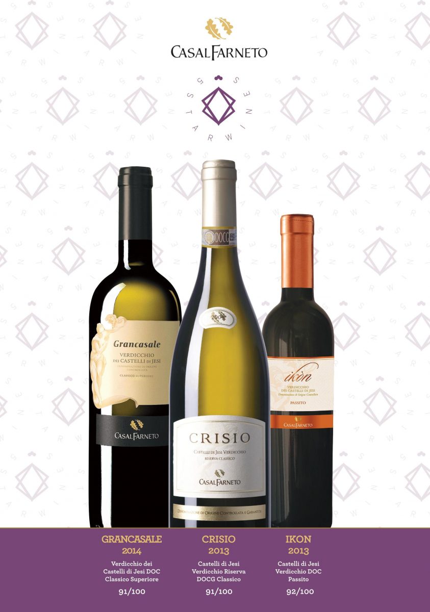 Il premio ottenuto consentirà ai vini CasalFarneto di far parte della guida internazionale 5StarWines – The Book 2017 che verrà pubblicata sia in versione cartacea che digitale entro l’estate. La guida riunisce i migliori vini che hanno ottenuto un punteggio di almeno 90/100 selezionati da una commissione internazionale di Master of Wine, Master of Sommelier, Sommelier e esperti giornalisti presieduta dal direttore scientifico della Vinitaly International Academy, Ian D’Agata. Sono stati esaminati 2.153 vini da Italia, Francia, Sudafrica, Ungheria, Slovenia, Croazia, Messico, Romania, Ucraina, Hong Kong, Turchia, Canada e Cina e solo 441 di questi sono entrati nella prestigiosa guida.