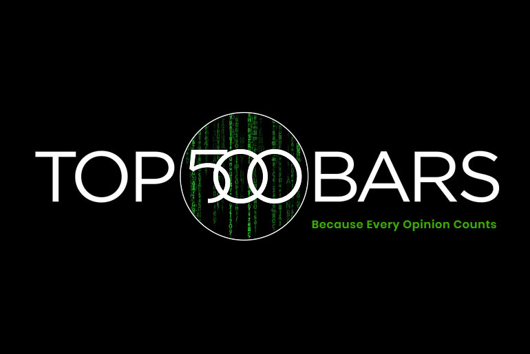 Top 500 bars per creare la propria classifica ha aggregato dati da centinaia di fonti da Internet in oltre 20 lingue diverse su cocktail bar. Non solo opinioni di esperti, come giornalisti , ma anche da piattaforme online e motori di ricerca che aggregano tutti i giudizi, per completare questo database. Questo ha permesso di riunire il maggior numero di punti di vista, per creare un elenco di migliaia di bar in tutto il mondo.