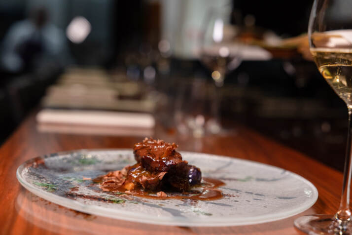 Spazio al vegetale con la Vellutata di Zucca, Carote e Zenzero di Chef Ernst Knam, con crema di burrata al cardamomo verde, servita con pallina di riso croccante, gamberi rossi e wasabi. Uno dei classici di Chef Wicky Priyan, con il suo Sushi Bomba, Capesante giapponesi e Hamachi con Yuzu Kosho. Esaltazione del cioccolato di Knam con la sua Melanzana Piccante con cioccolato Peru 70%, guanciale di maiale iberico e salsa di kumquat al pepe di Sichuan. Risponde Wicky con una rivisitazione della Coda di Vaccinara.