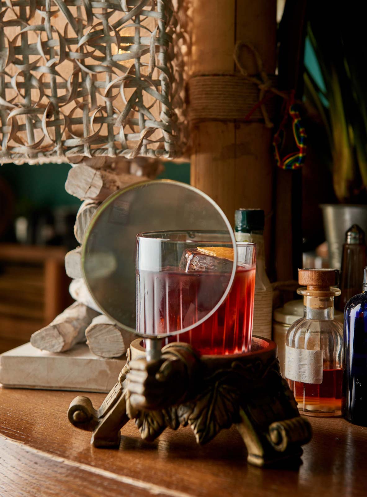 Per la nostra carrellata natalizia Davide Mitacchione ha voluto preparare un Kainati Negroni, un twist a uno dei grandi drink classici. Kainati è una parola Maori e significa castagna, elemento aromatico di questo drink e uno dei simboli invernali del Luau Tiki Bar, specie nel periodo natalizio. Partendo dalla classica ricetta del Negroni, viene sostituito il gin con un rum jamaicano pot still ad alta gradazione cotto sottovuoto con le castagne, a cui viene aggiunto vermuth chinato e bitter, qualche goccia di bitter al cioccolato e come decorazione una scorzetta di arancia.