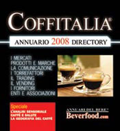 COFFITALIA® 2008, il nuovo annuario dedicato al settore del caffè in Italia, appena edito dalla Beverfood, ricostruisce e aggiorna l’intero settore con riferimento a mercati e quadro competitivo, prodotti, comunicazione, torrefattori, operatori del coffee trading, produttori di macchine del caffè e distributori automatici, fornitori di impianti e macchinari per la torrefazione, fornitori di packaging, fornitori di materiali per i punti di vendita, fornitori di servizi, aziende del vending, associazioni, ecc