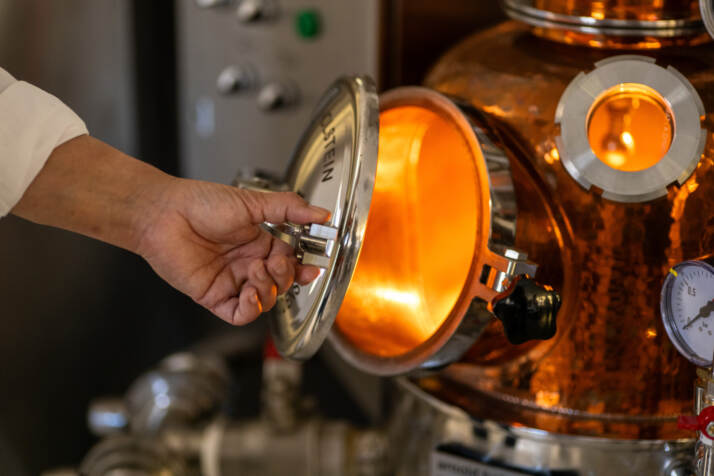 Frutto di un sapiente processo di doppia distillazione, questa opera prima ricorda più da vicino distillati bianchi come il gin o la vodka, più che liquori.