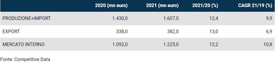 La crescita del mercato interno è stata del +12,2%, per un controvalore di 1.225,0 milioni di euro.