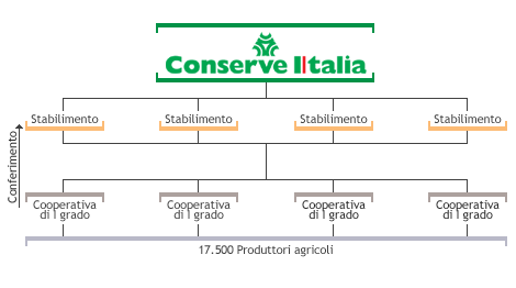 Conserve Italia ha la forma giuridica di Società Cooperativa Agricola ed è la capofila di società di capitali presenti sia in Italia (quali Cirio De Rica SpA) che negli altri paesi dell’Unione Europea: Conserves France, Juver, Warburger.