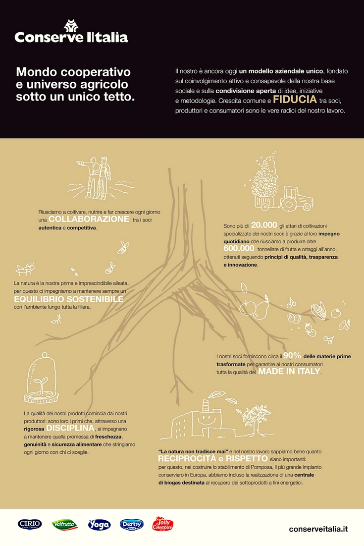 In questo contesto, Conserve Italia si riafferma partner affidabile nella produzione di alta qualità per le più importanti insegne della distribuzione italiane e straniere, grazie ad una grande filiera produttiva associata composta da produttori attivi nelle zone più vocate del paese e ad un alto livello di “servizio” inteso come continuo miglioramento nei processi di selezione delle materie prime, produttivi e logistici derivanti dall’esperienza sviluppata sui marchi industriali Valfrutta, Cirio, Yoga e Derby Blue.